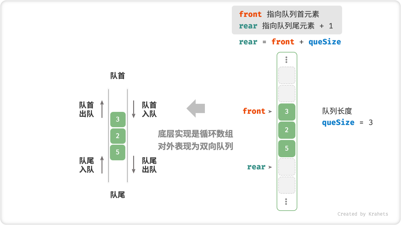 对于队列,我们只能在头部删除或在尾部添加元素,而「双向队列 Deque」更加灵活,在其头部和尾部都能执行元素添加或删除操作。