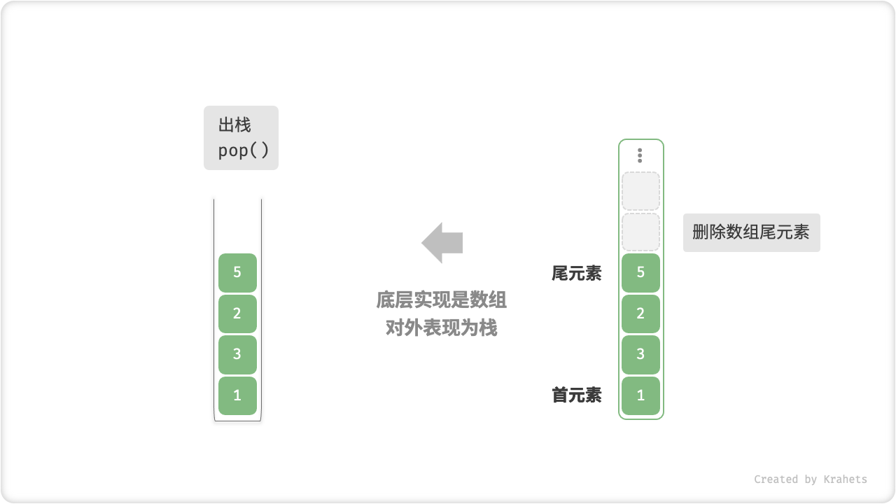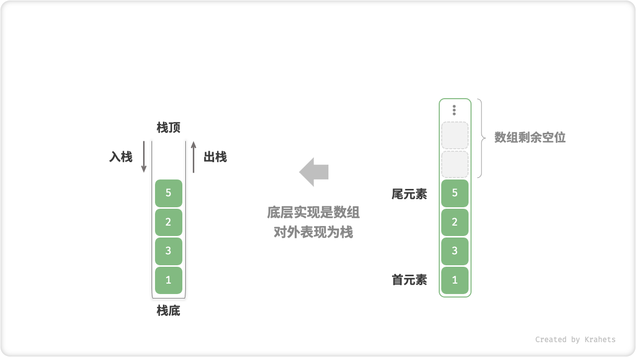 我们可以直接使用编程语言实现好的栈类。 某些语言并未专门提供栈类,但我们可以直接把该语言的「数组」或「链表」看作栈来使用,并通过“脑补”来屏蔽无关操作。